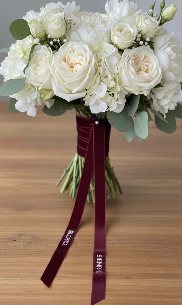 Esta cinta personalizada es el detalle perfecto para envolver el ramo de novia con un mensaje único. Se puede grabar con nombres, una fecha o una frase especial, convirtiendo el ramo en un recuerdo aún más emotivo. Hecha con materiales delicados y pensada para momentos llenos de significado, es ideal para completar tu look o como un regalo con intención para alguien que está a punto de vivir su gran día.