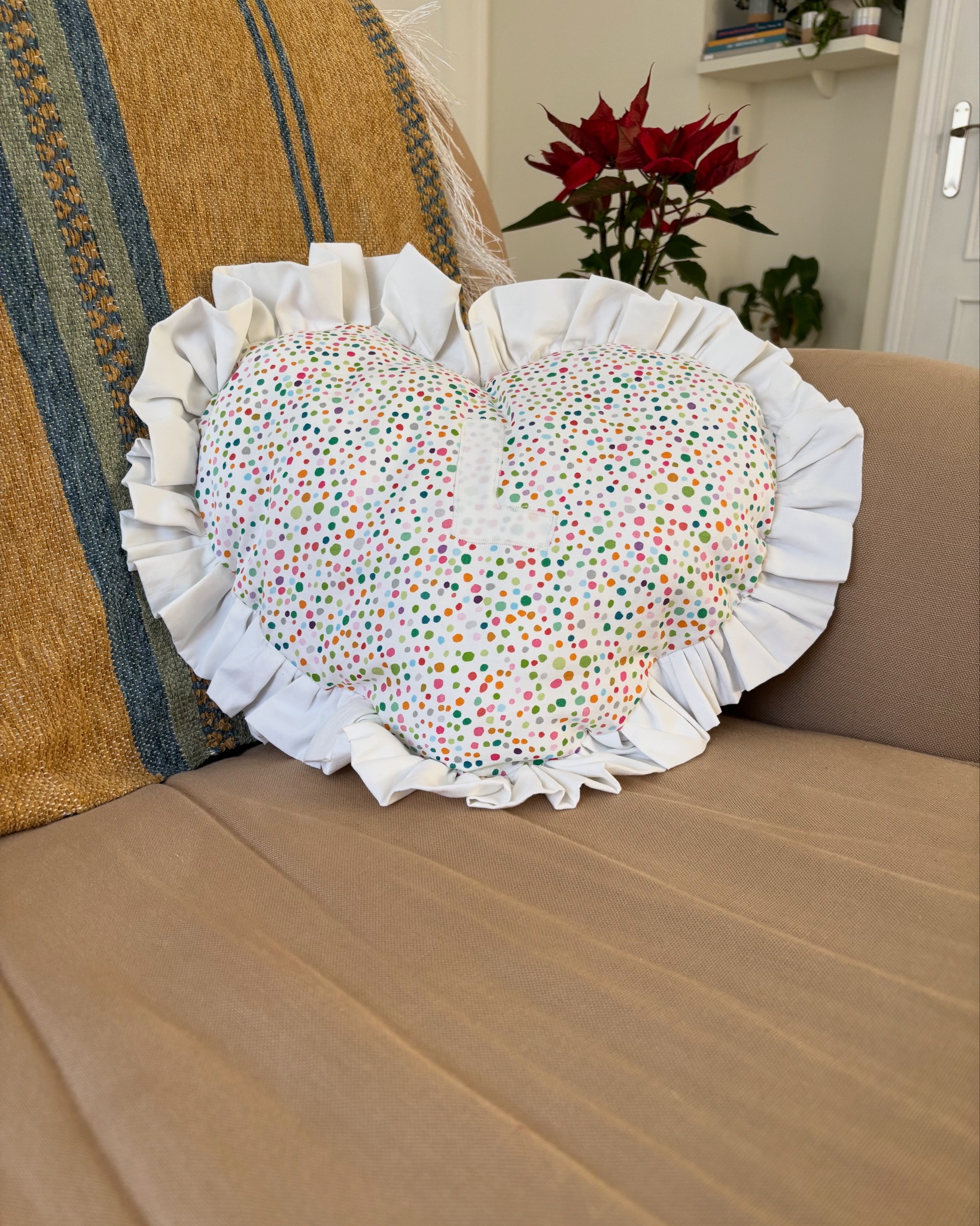 Cojín con forma de corazón personalizado con la tela y la inicial que se desee.