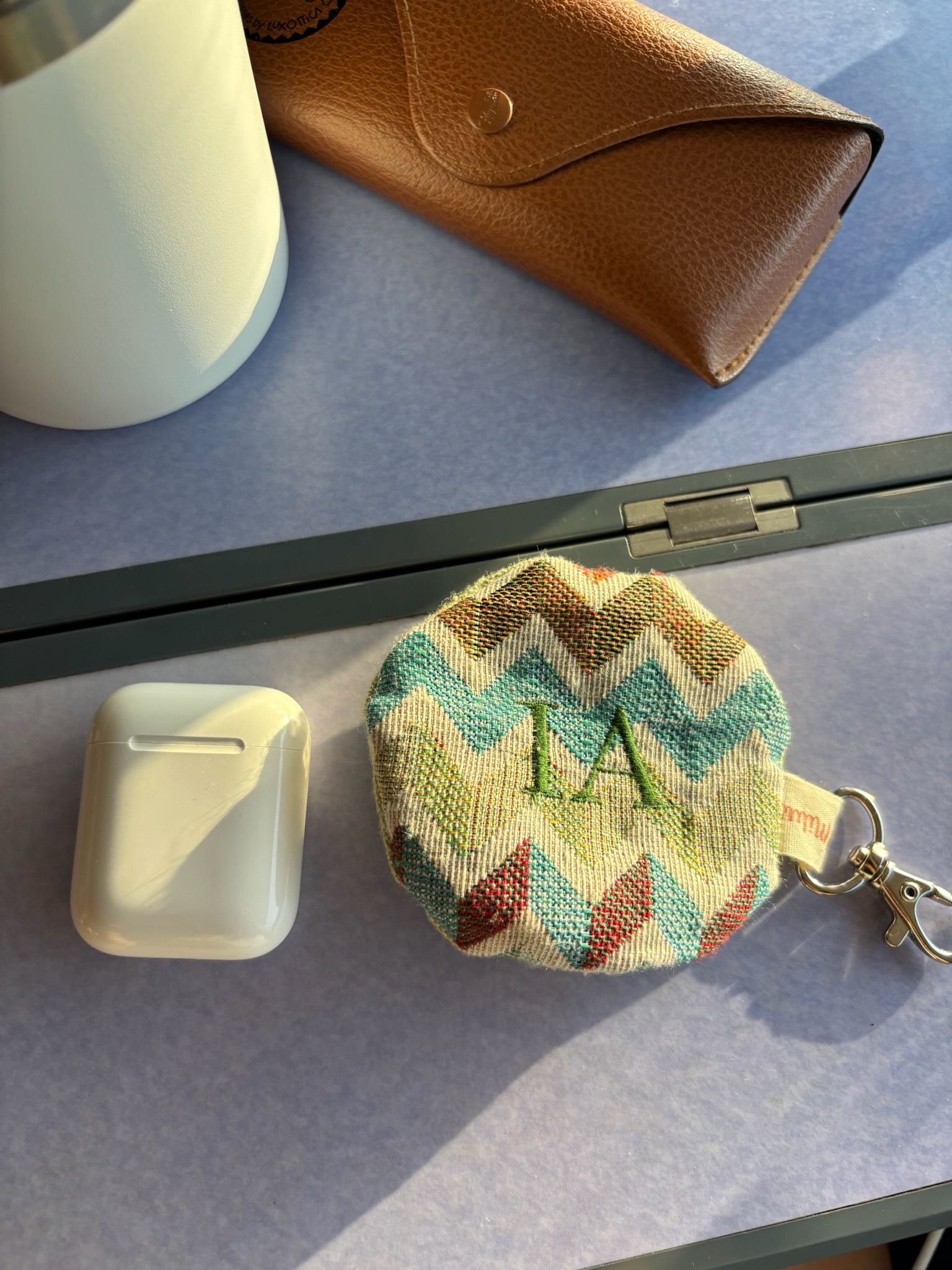 Funda de auriculares confeccionada a mano, personalizada con las iniciales que elijas, bordadas cuidadosamente. Un accesorio único y práctico para proteger y llevar tus auriculares.